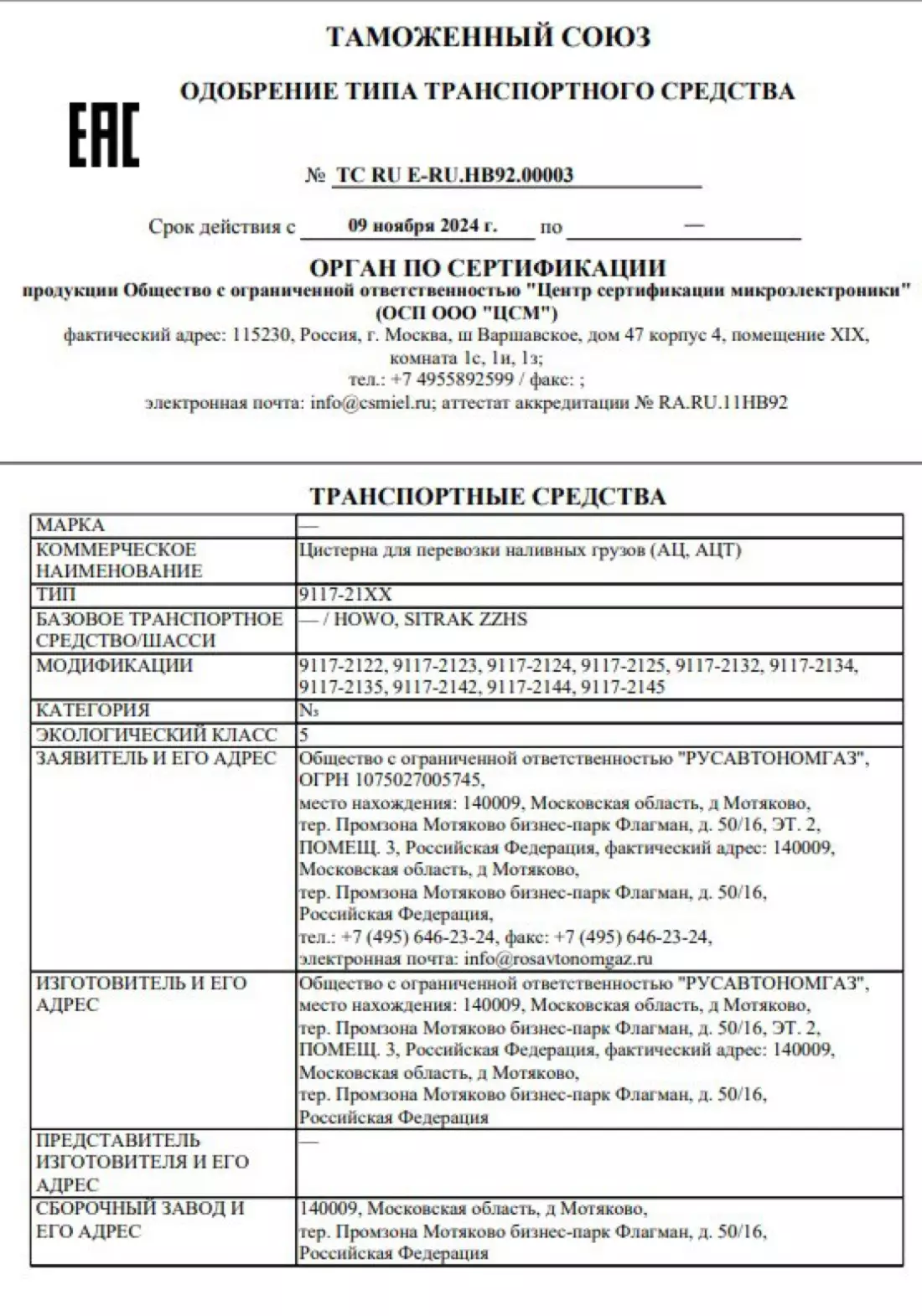 - Перевозимый продукт — Сжиженные газы: пропан, бутан (по ГОСТ 20448-90 и ГОСТ 27578-87)